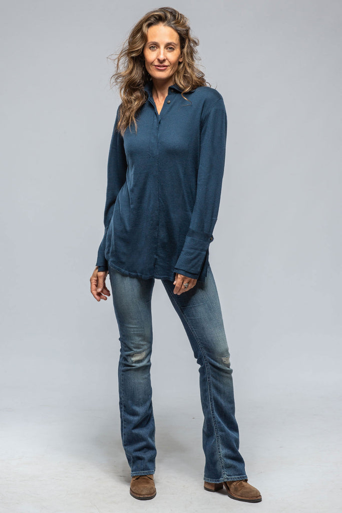 Masi Long Knit Cardigan In Denim | Ladies - Sweaters | Sonia Villa
