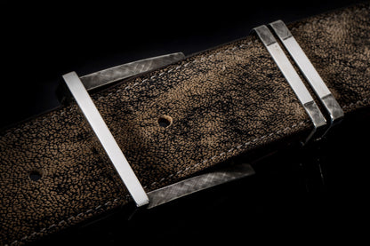 - Handmade 1 1 /2" square wire Crossbeam buckle and keeper, florentine legs.