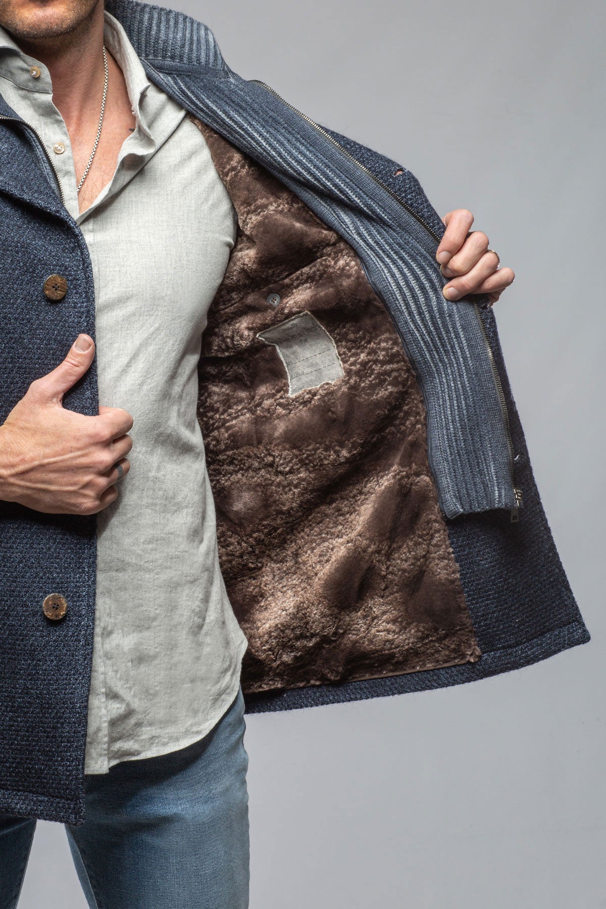 The Juneau is made for Axel's by Gimo's with the same wool-mohair blend fabric that's become a staple in the Gimo's line-up. Thick and well-textured, the material fills your hand like a jacket, but with a sweater's softness and stretch. A smart, sophisticated style made even more versatile with a zip-out placket. Horn button closure, garment-dyed wool, cut and sewn by hand in Italy.