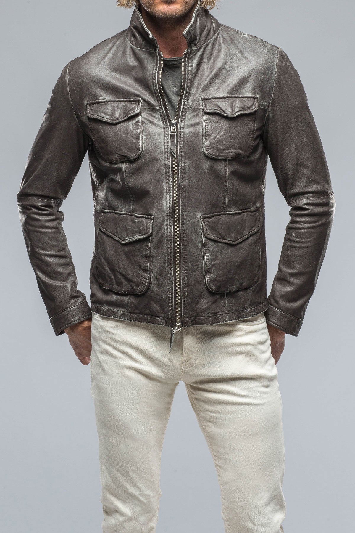 A softer take on leather; the Dino jacket from Gimo's features the same "cool-guy" attitude of its moto jacket counterparts, but shifts away from a stark, harsher aesthetic. Buttery soft lambskin that has been veg-dyed into a brown and charcoal tone, the precision craftsmanship of the four-pocket silhouette brings the style over the top.