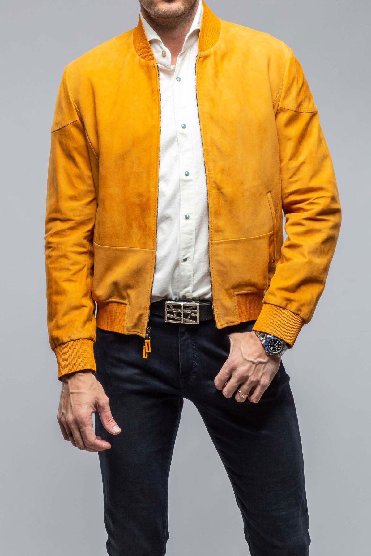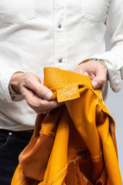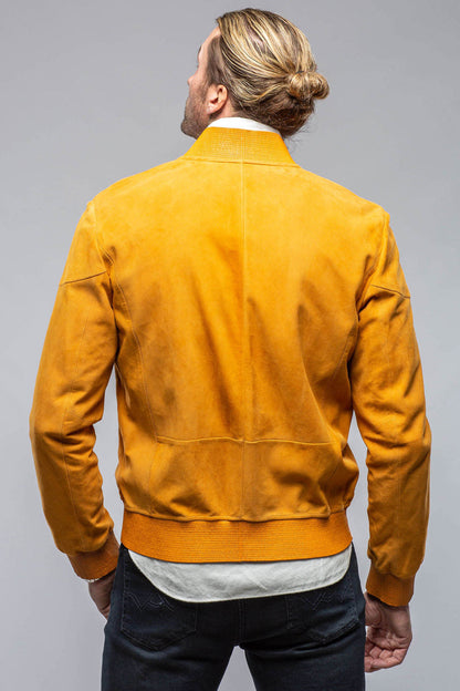 The Kalahari is a silky smooth, fiori pieno (full grain) capra suede jacket that features elasticized ribbing on the cuffs, waist, and baseball collar. Lightweight, luxurious, and comfortable, the jacket interior is butter-soft, naked-finished, pure aniline nappa. The two distinct finishes on the same skin are a classic Robert Comstock detail, and he hand-signs every piece.