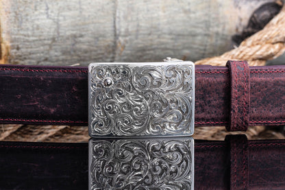 Designed with both style and function in mind, the buckle features a hinged bail for ease of use and versatility. Measuring 1 7/8” x 2 7/8”, it provides the perfect balance of statement-making design and everyday wearability.