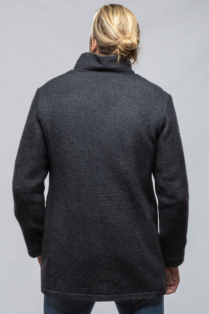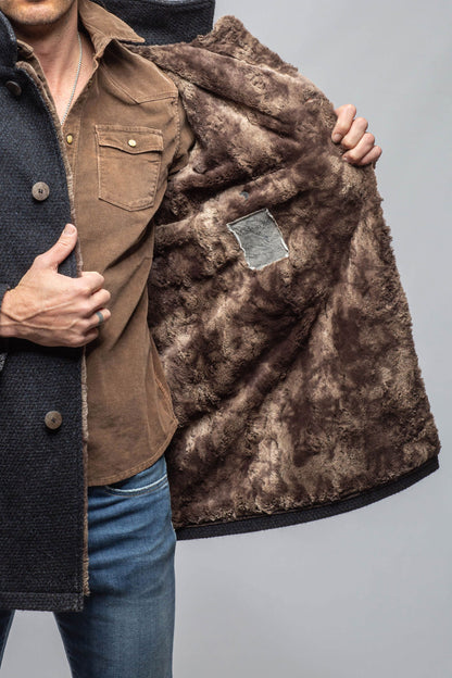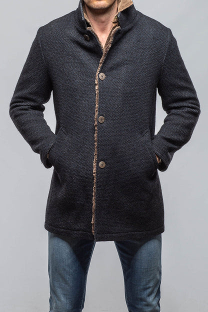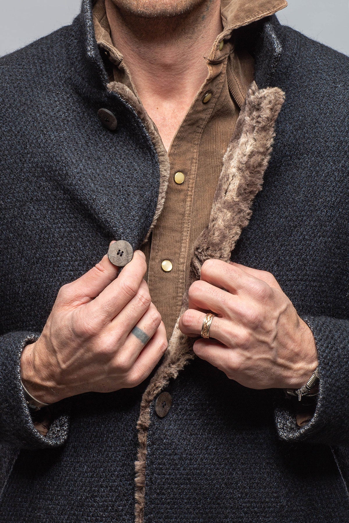 The Lazard was made for Axel's by Gimo's with a wool-mohair blend knit. Thick, well-textured fabric that registers definitively as a coat, with a sweater's softness and stretch. Lined in deliciously soft synthetic fur fleece, the Lazard is a smart and approachable style sure to be complimented for seasons to come.