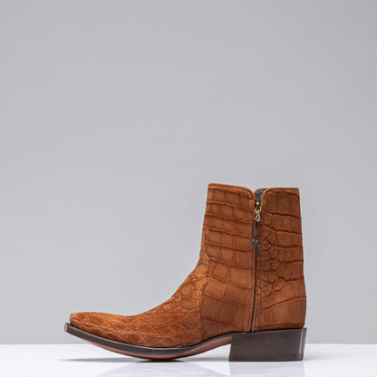 The Sato boot is a unique Zorro Gallegos construction, crafted from a limited-edition American alligator leather with a sueded finish. This is the final run of this premium skin—once they’re gone, they’re gone. Featuring a discreet inside-ankle zipper for easy on-and-off, the Sato also offers a slightly wider fit than our standard cowboy boot last. Each pair is handmade by artisans at Stallion Boot Company in El Paso, Texas, with over 30 years of experience.