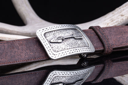 Designed for both style and functionality, the buckle features a hinged bail for ease of use and versatility. Measuring 1 7/8” x 2 7/8”, it is the perfect size to make an impact while maintaining a sleek, wearable profile.