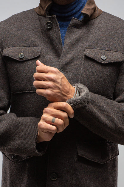 Wool-blend, faux shearling lining, suede detailing. Pleasing fabric thickness fills your hand, with good texture and the right roughness around the edges. Stylishly straightforward design. True to size, smartly trim.